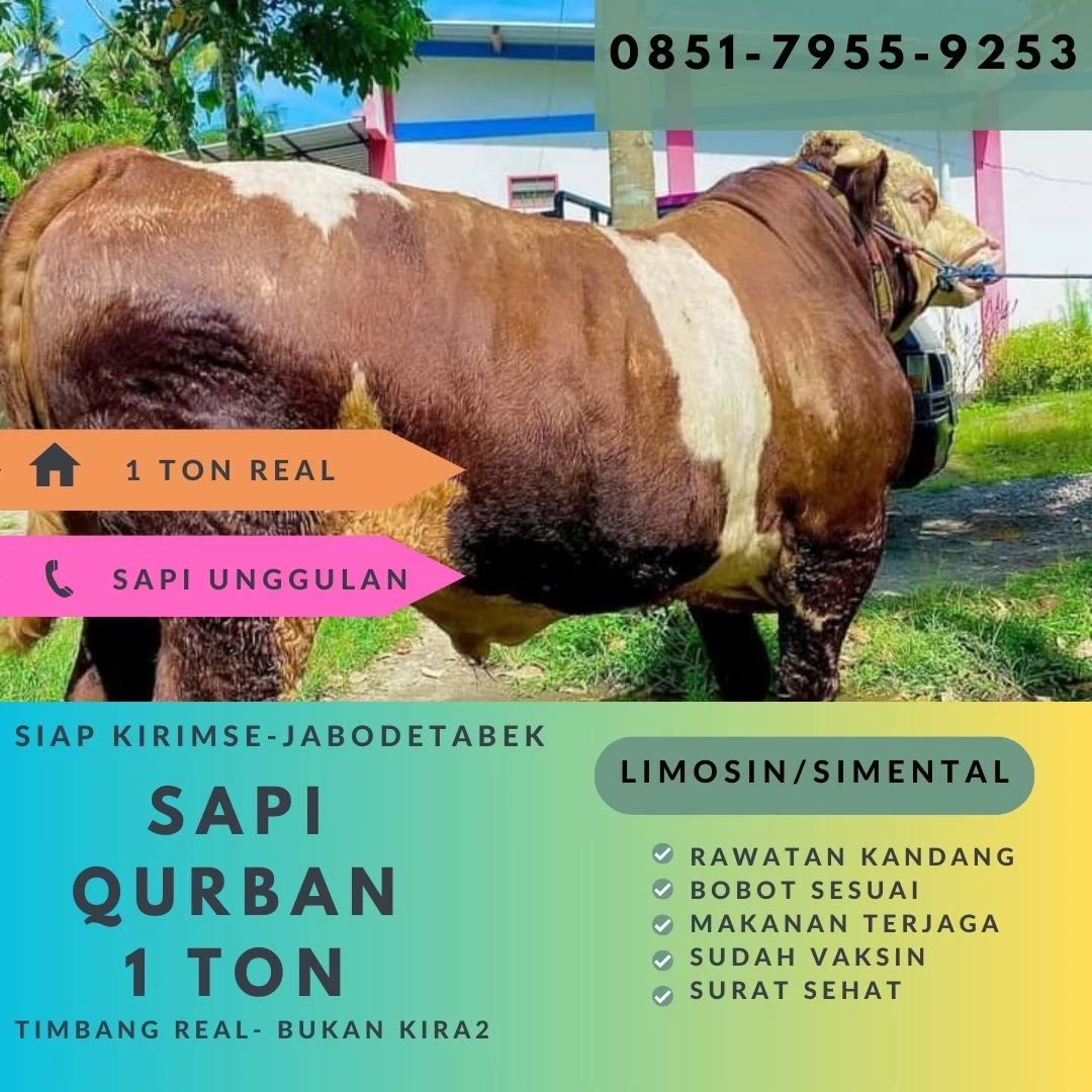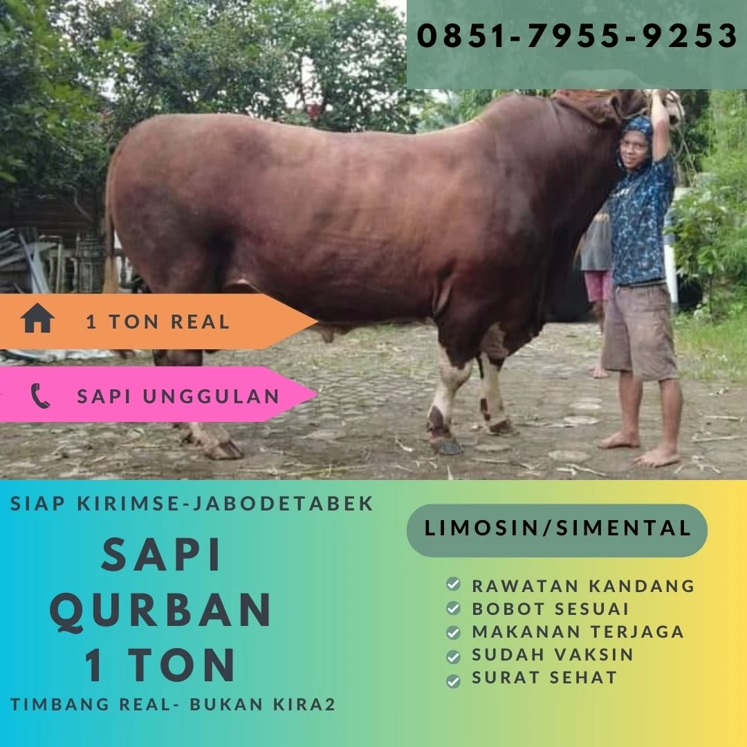 π Dapatkan pengalaman qurban yang istimewa dengan memilih sapi limosin berkualitas dari kami! Sapi qurban kami, beratnya mencapai 1 ton atau setara dengan 1000 kilogram, merupakan pilihan utama untuk memenuhi syarat syariat hukum qurban.